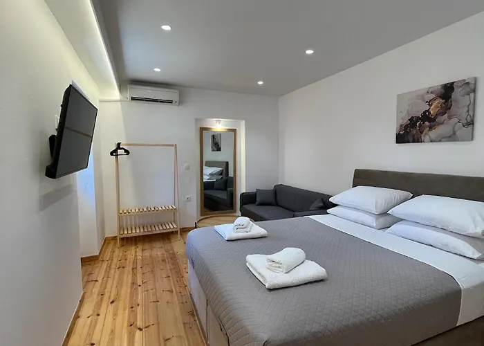Апартаменты Bucaterra Corfu с видом на внутренний двор находятся приблизительно в 7 км от Площади Теотоки Г. Также предоставляется Wi-Fi.